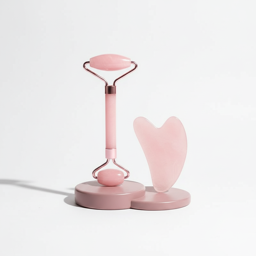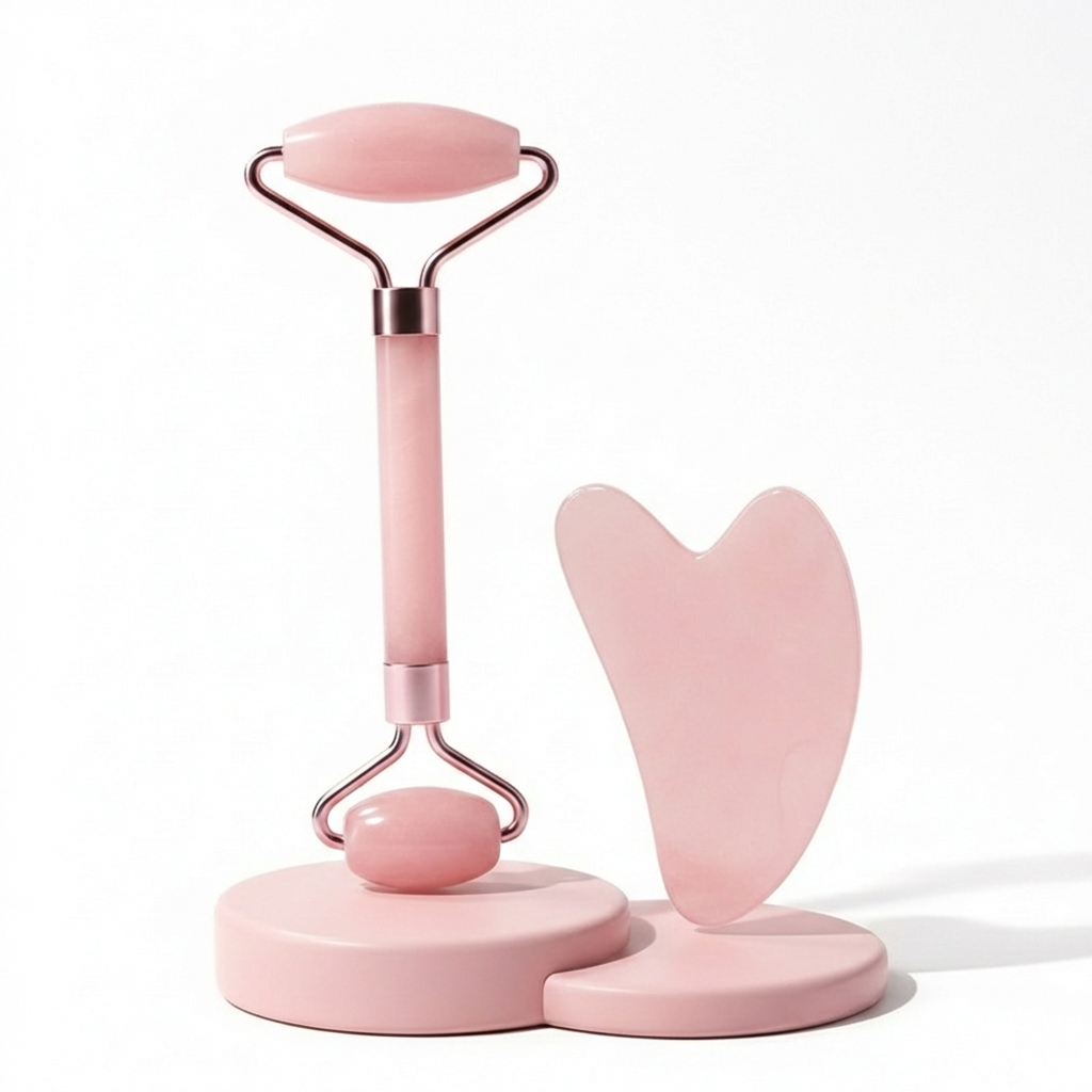 Dual-function design combines rolling massage and scraping therapy in one elegant tool
